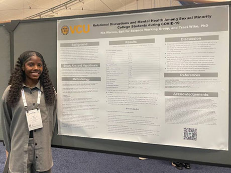 Nia Warren worked with Dr. Traci Wike (School of Social Work) to examine the influence of relationship disruptions on mental health and well-being among college students who are sexual minorities.